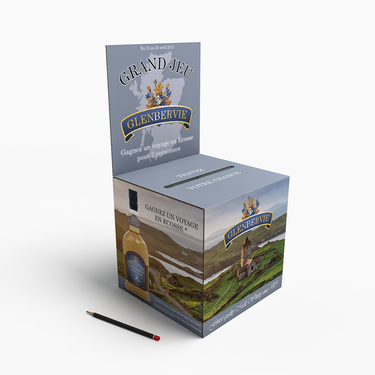 Urne de comptoir au format 200 x 200 x 200 mm avec fronton 200 x 200 mm. Adaptée aux bulletins format A6 et A5.